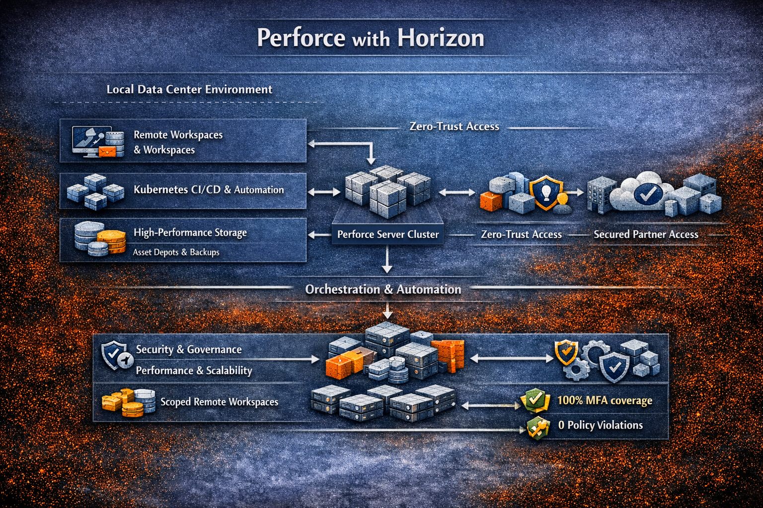 Horizon operates Perforce as a first‑class component of its governed development platform, combining studio DevOps expertise with Horizon TechOps to deliver secure, high‑performance asset pipelines.